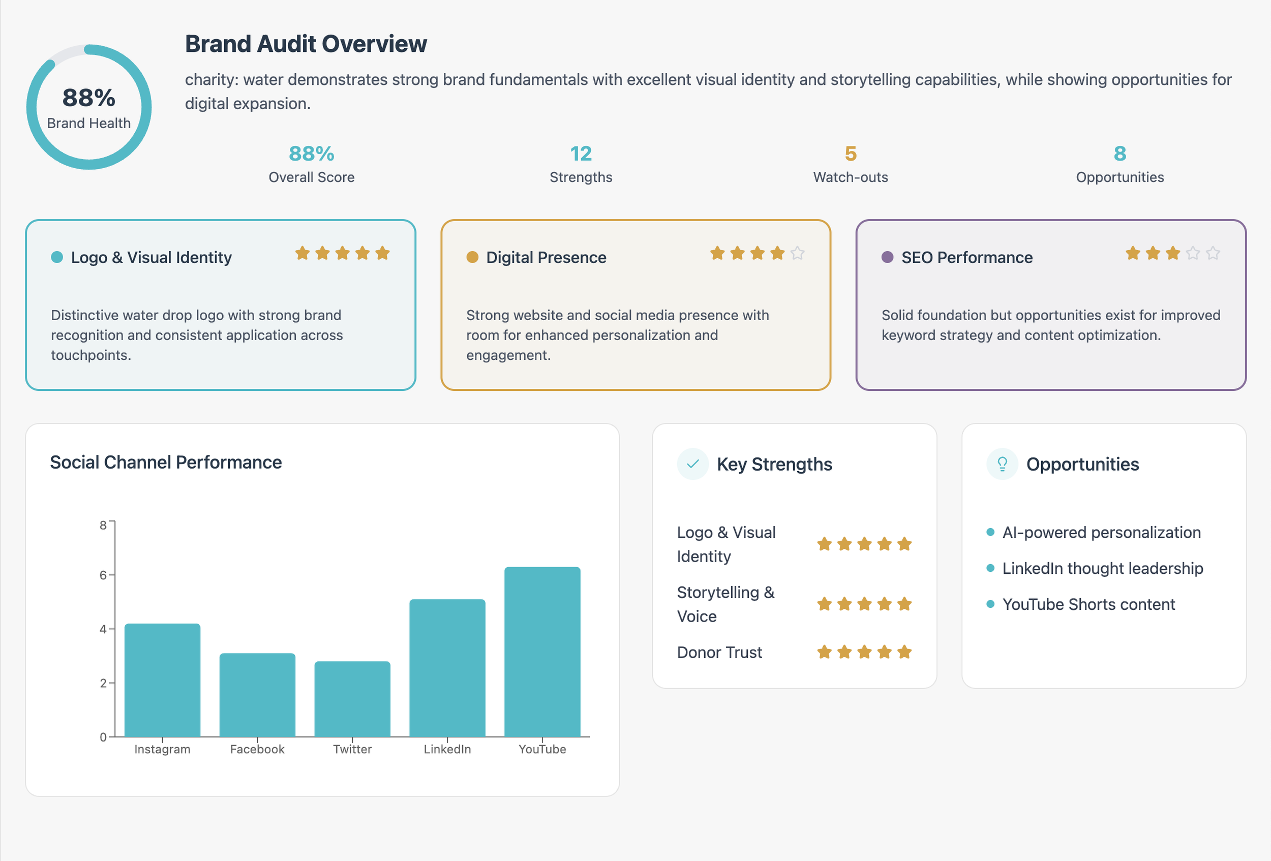 AI-powered Brand Audit revealed new opportunities for one of the world’s most admired nonprofits and how the same framework fuels clarity, innovation, and growth for every client.